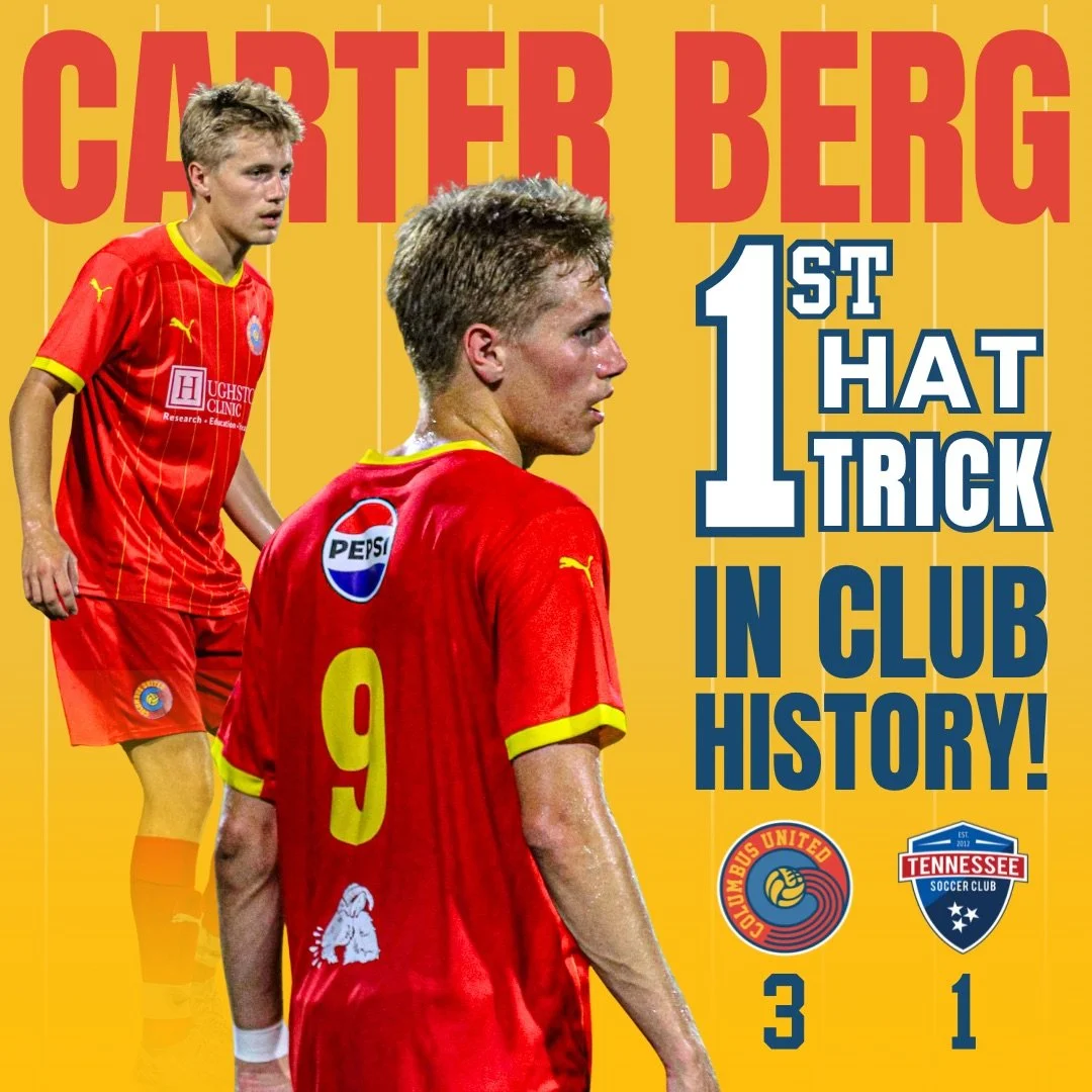 • Carter Berg makes Club History with FIRST-EVER HAT TRICK for Columbus United FC Text